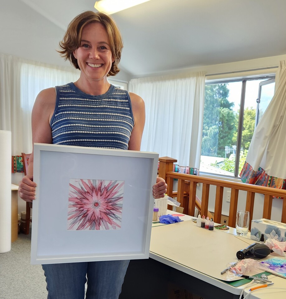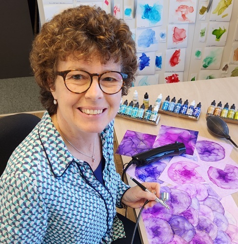 Hi, I’m Lucie Anderson, the artist behind Limitless Abstracts. Based in sunny Napier (NZ), I’ve been surrounded by creativity my entire life, growing up in my family’s art and stationery shop in Belgium. After studying photography at art school, I lived in Dunedin for 20 years before settling in Hawke’s Bay in 2015. Now, I specialise in alcohol ink art, a vibrant and fluid medium where I guide liquid inks with air tools to create unique, dynamic pieces. My work combines bold colours with shimmering metallics, reflecting my love for experimentation and nature’s beauty.