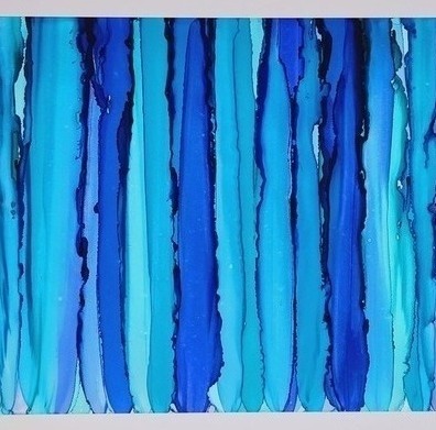 This unique and beautiful alcohol ink art is an original piece that is created using liquid ink and an airbrush technique. It features lovely shades of blues, turquoise, light and dark blue with intricate stripes and layers of abstract design. This art piece is truly one of a kind and can be hung in different directions to showcase its beauty. It is a stunning and unique work of art that will be a perfect addition to any home or office decor. This artwork has been created as a pair but doesn't need to be purchased as a pair.