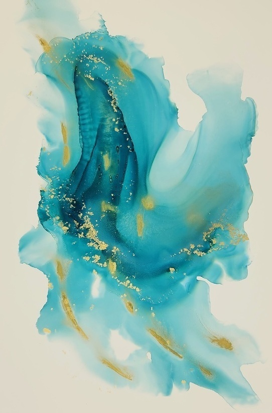 Indulge in the captivating beauty of this one-of-a-kind alcohol ink art painting. This stunning original art piece is created using a unique flow and airbrush technique that gives it a soft and fluid appearance. The painting features a gorgeous range of blues, turquoise, but mainly teal, with a delicate balance of gold flowing through to add a touch of shimmer and reflection. This beautiful and abstract artwork draws you in, making it impossible to look away. It is very versatile as it can be hung in different directions to truly showcase its beauty.