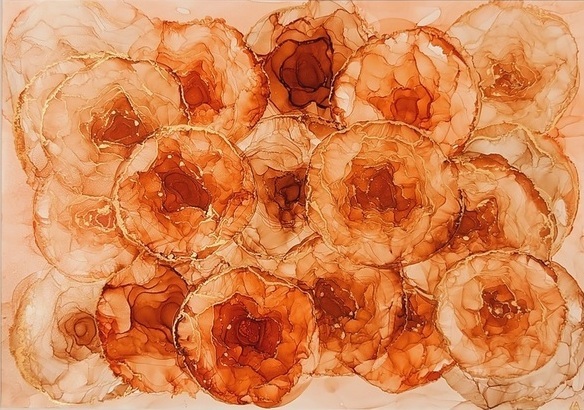 Burnt Orange Multi Flowers with Gold Accents. This is the original painting.