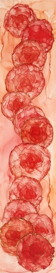 My original art piece showcases a stunning flow and fluidity achieved through airbrush techniques, resulting in delicate petals creating flowers that cascade down the art piece. Each flower is individually created, making many unique flowers. The gold edges around the flowers add a touch of luxurious elegance that reflects and shimmers in the light. This rare abstract floral art panel will bring a beautiful and relaxing atmosphere to any room. It's perfect for those who have a love for flowers and appreciate the beauty and intricacy of this artwork. Don't miss out on the opportunity to own this rare abstract floral art panel which will bring a beautiful and relaxing atmosphere to any room.