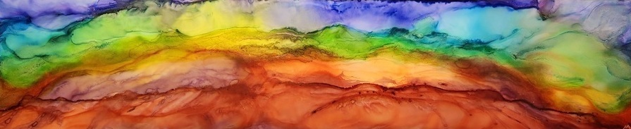 Earthsong Horizons is a panoramic alcohol ink artwork that celebrates the raw beauty of the natural world. Layers of terracotta, emerald, turquoise, and violet flow together, echoing landscapes shaped by time and energy. With its rich textures and fluid movement, the piece evokes the feeling of viewing the land from above – where earth and sky meet in a symphony of colour.
