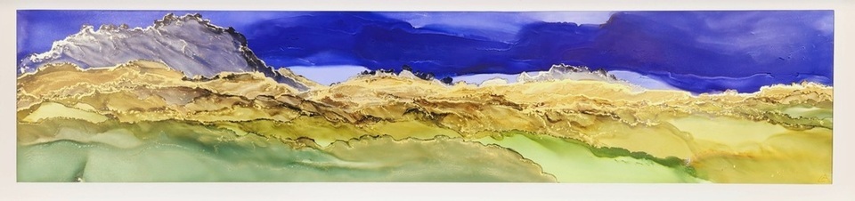 Each piece is an original creation, making it a one-of-a-kind work of art that will add a touch of sophistication to any space. The air wave and airbrush technique used in its creation result in a stunning abstract landscape panorama that is breathtakingly beautiful. With colours like blue, gold, ochre, and green meadows, this artwork is a feast for the eyes. The gold reflects the light, creating a mesmerizing effect that will leave you entranced. It's a work of art that will undoubtedly be the centre of attention in any room. So, whether you're a seasoned art collector or just looking to add a touch of unique beauty to your home, my alcohol ink art painting is a must-have. Don't miss out on the opportunity to own this stunning piece. Thank you for taking the time to look at my art.