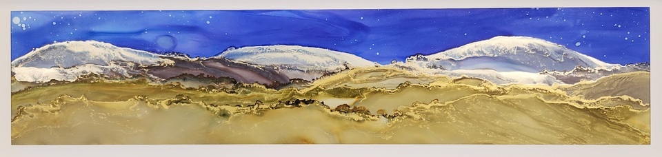 Each piece is an original creation, making it a one-of-a-kind work of art that will add a touch of sophistication to any space. The air wave and airbrush technique used in its creation result in a stunning abstract landscape panorama that is breathtakingly beautiful. With colours like blue, gold, ochre, and green meadows, this artwork is a feast for the eyes. The gold reflects the light, creating a mesmerizing effect that will leave you entranced. It's a work of art that will undoubtedly be the centre of attention in any room. So, whether you're a seasoned art collector or just looking to add a touch of unique beauty to your home, my alcohol ink art painting is a must-have. Don't miss out on the opportunity to own this stunning piece. Thank you for taking the time to look at my art.