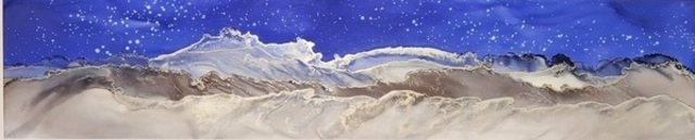 Night blue with cool grey tones landscape and silver accent on the ridges.