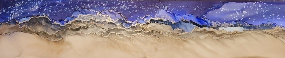 Night sky with warm grey tones landscape with silver accents on the ridges.