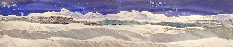 alcohol ink art painting showcases a beautiful and unique abstract landscape in shades of