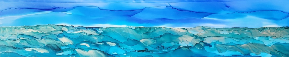 Seascape in vibrant blue sky with turquoise - teal ocean colours with silver accents that will blow you away!