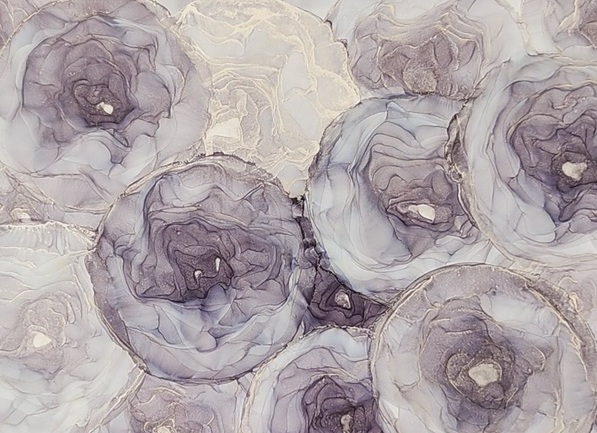 Gorgeous Multi Flowers in shades of grey with Silver Accents that make them shimmer and shine! This is the original painting.