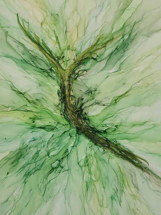 Soft shades of greens making a dance with colours. Artwork measures 30 x 42 cm (A3) and comes framed in a white frame with Plexiglas measuring 44 x 62 cm (A2)