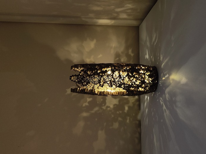 Delicately hand-formed and layered with natural textures, this piece cradles warm, golden fairy lights that glow from within. When lit, it casts intricate patterns across the walls, like flickering memories or the light filtering through leaves. There’s something soothing about it, calming, grounding, yet full of movement and life.