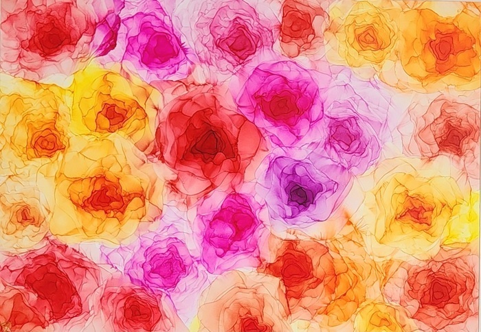 Bring a burst of spring energy into your home with Fields of Joy, a vibrant alcohol ink original by New Zealand contemporary artist Lucie Anderson. Flowing layers of pink, orange, red and yellow bloom across the surface like a radiant field of flowers, celebrating light, colour and movement.