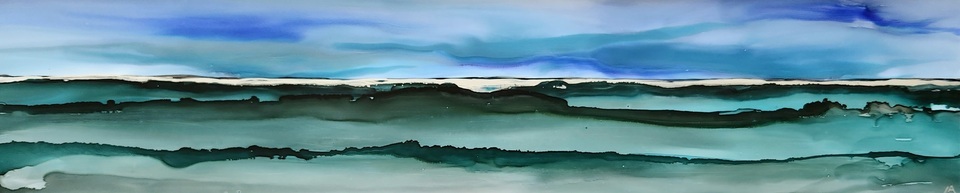 Still a vibrant landscape but with this one I played around with a different technique and let the layers flow more together. In this one, there is just a hint of silver on the horizon. A beautiful tranquil piece of art.