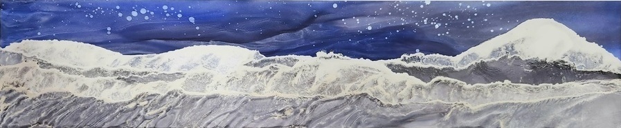 Introducing a one-of-a-kind original art piece that will take your breath away! This stunning alcohol ink art painting showcases a beautiful and unique abstract landscape in shades of blue and grey with hints of silver that reflect shimmers of light like a starry night sky. The fluid and flowy airbrush technique used to create this masterpiece provides a mesmerizing effect that transports you to a peaceful dusk scene. This art piece is truly a work of art. Don't miss the chance to own this beautiful and unique painting that is sure to impress your guests and leave a lasting impression on anyone who lays eyes on it.
