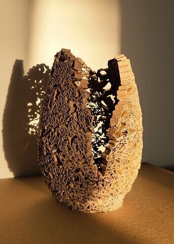 Original Textured Corrugated Cardboard Artwork with Light | Contemporary Wall Sculpture by Lucie Anderson