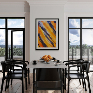 The bold streaks of molten orange and deep shadows reflect the indomitable energy that pulses through volcanic landscapes, fire, sunsets, and the inner self. This work invites the viewer to interpret and feel their own version of that in-between state, where nothing is certain, yet everything is alive with possibility.