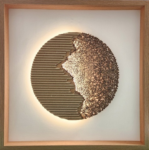 Original Textured Corrugated Cardboard Artwork with Light | Contemporary Wall Sculpture by Lucie Anderson